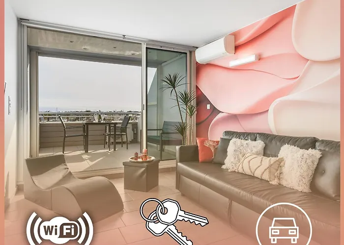 Located 2.9 km from Le Cap d'Agde International Golf Course, which is highly appreciated by sports lovers, the 40 m² Le Sixty9 - Appartement Luxe - Terrasse - Parking - Port Ambonne Village Naturiste Agde includes a barber shop. This 1-bedroom apartment invites guests to enjoy a sauna available on site.